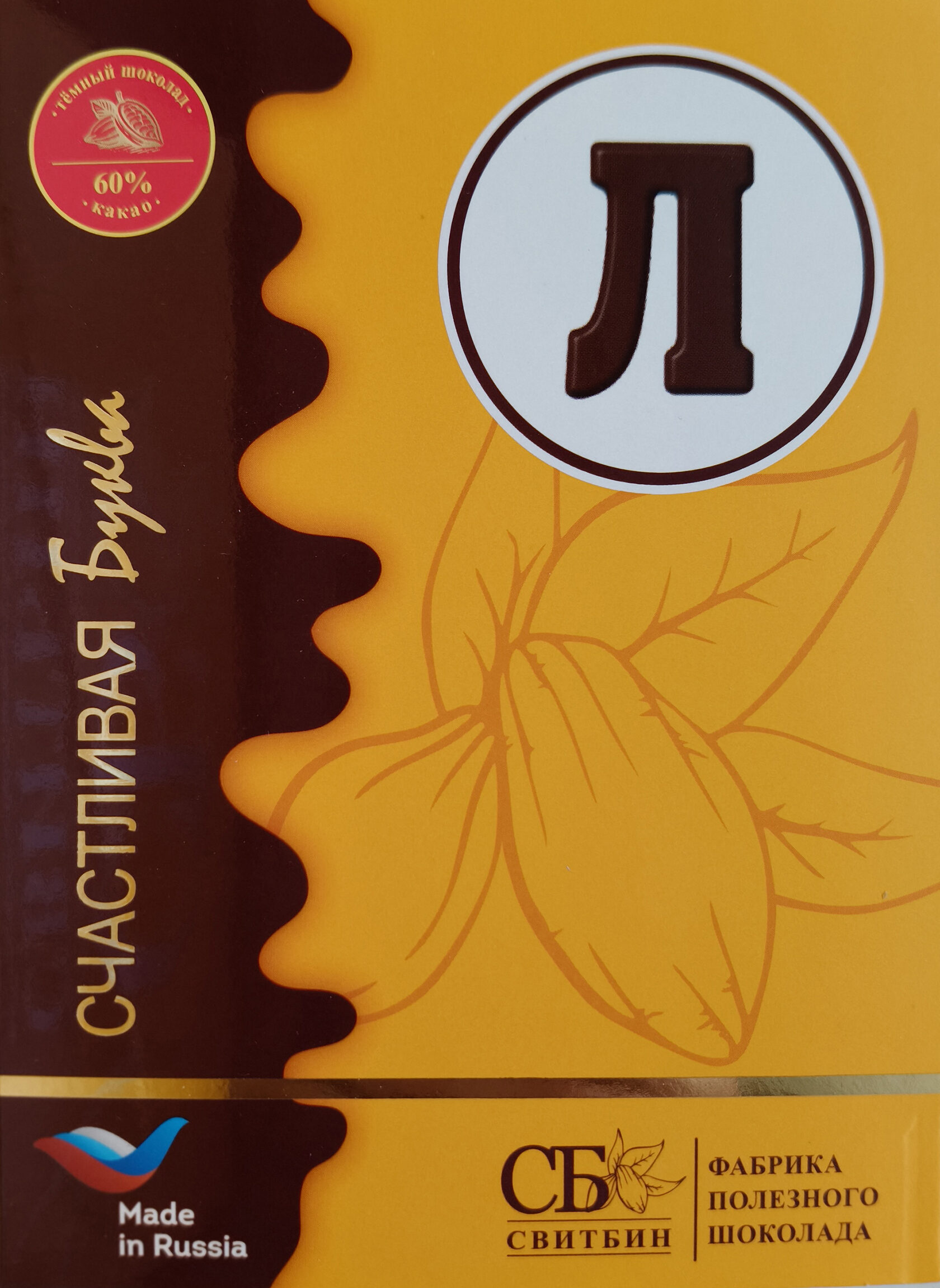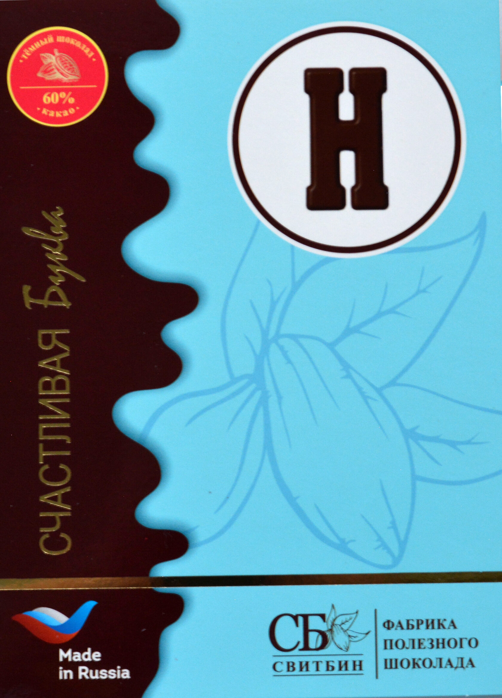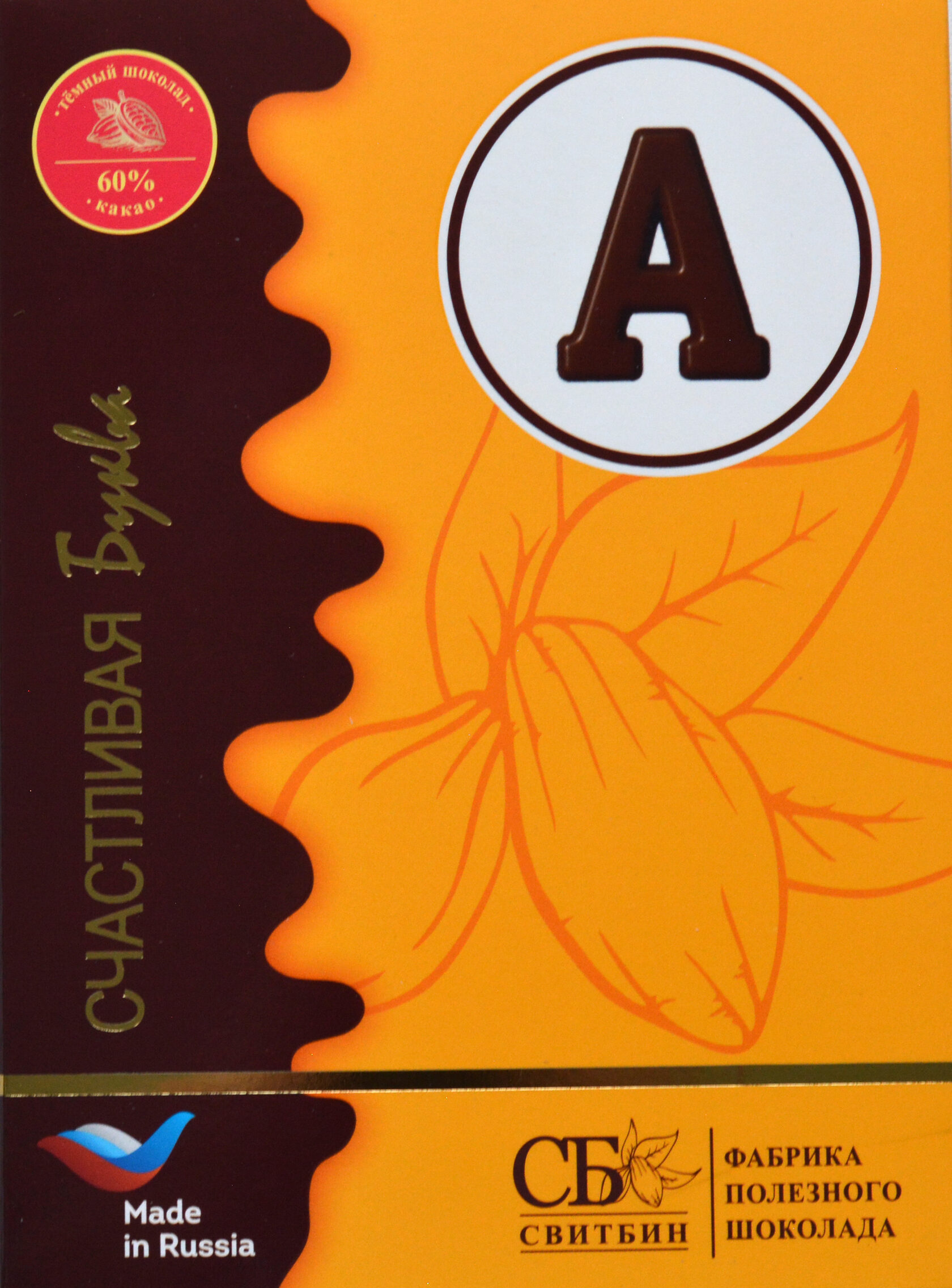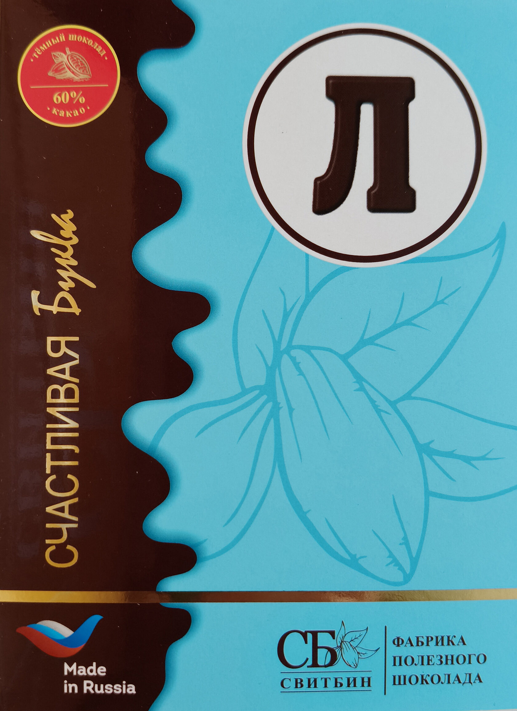 Подарок шоколад темный на сиропе топинамбура "СЧАСТЛИВАЯ БУКВА"