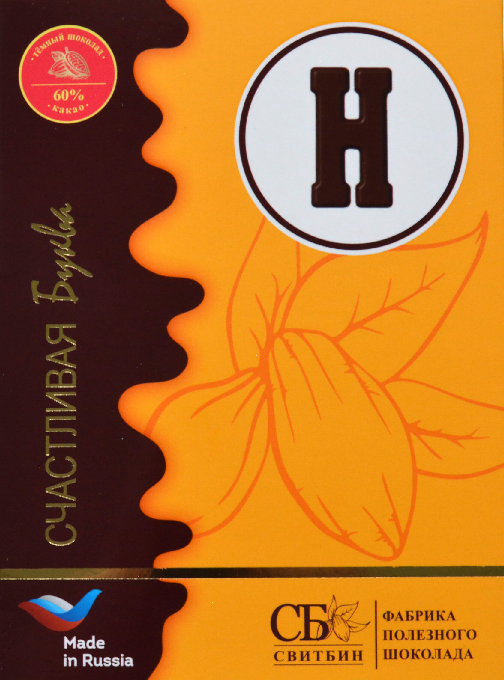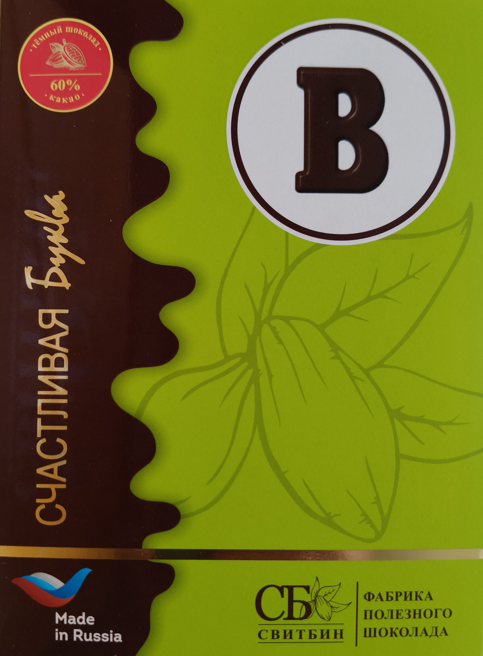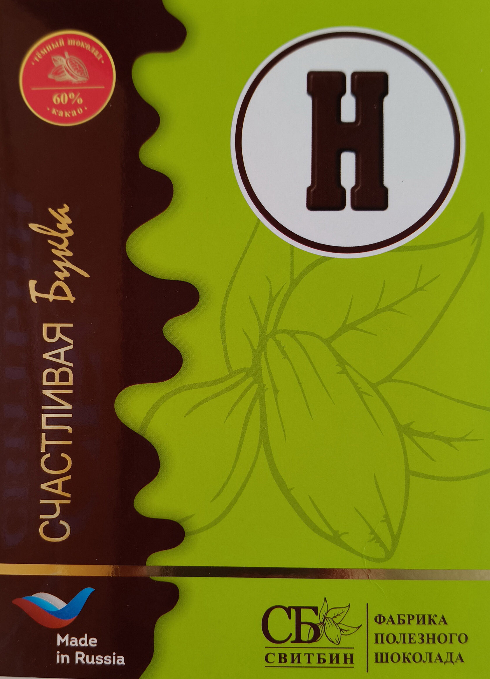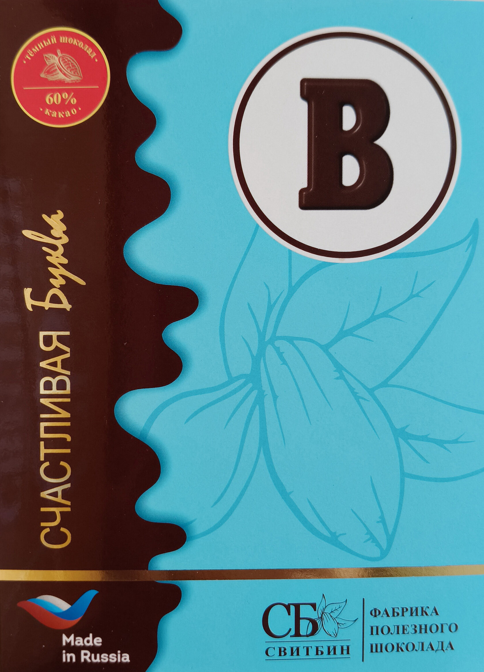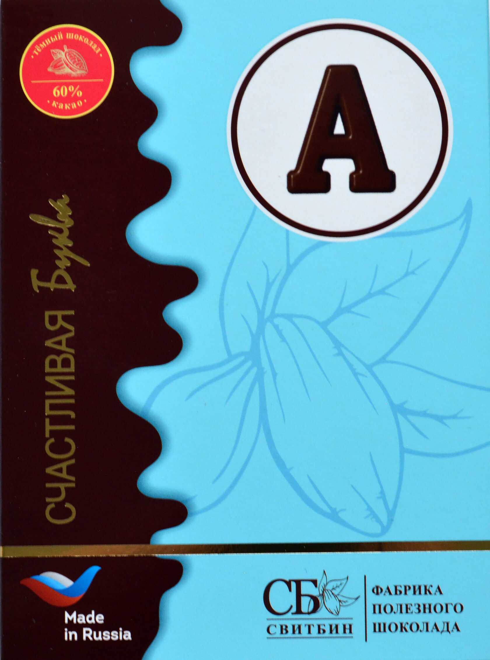 Подарок шоколад темный на сиропе топинамбура "СЧАСТЛИВАЯ БУКВА"