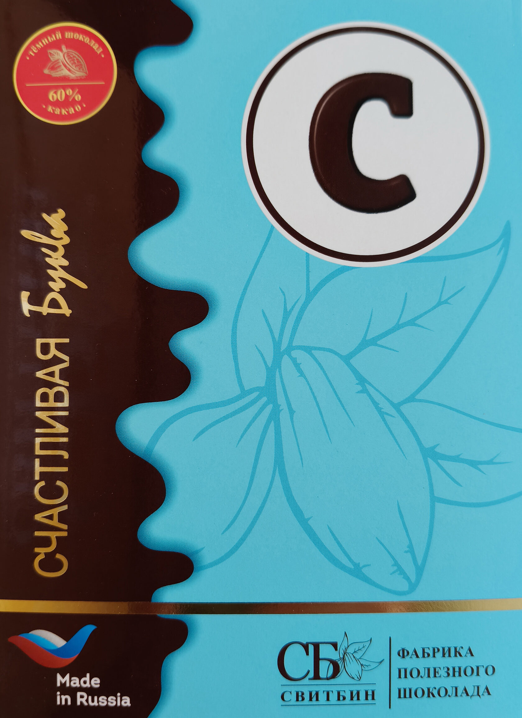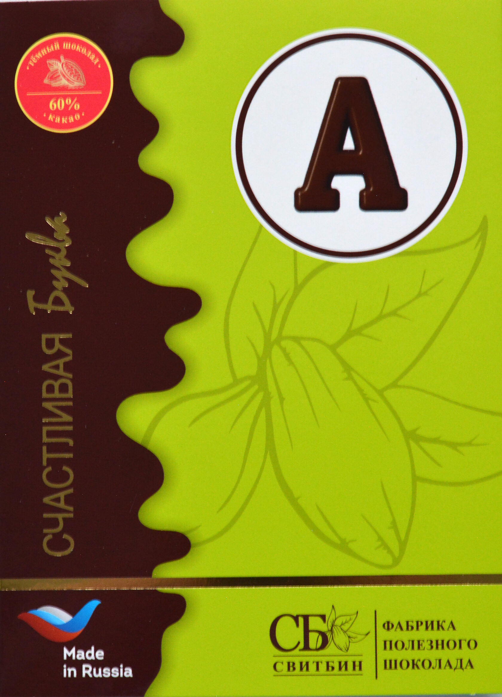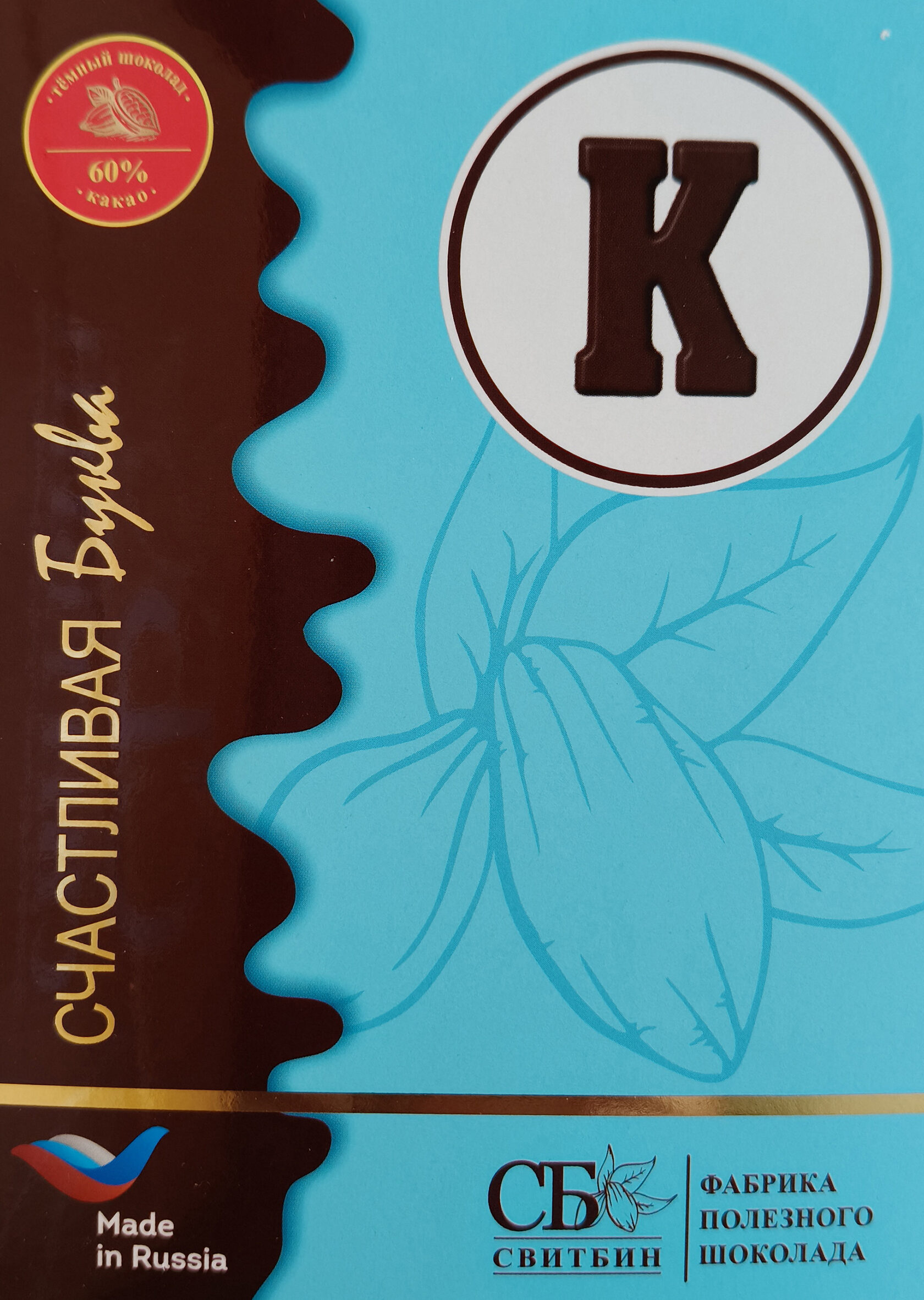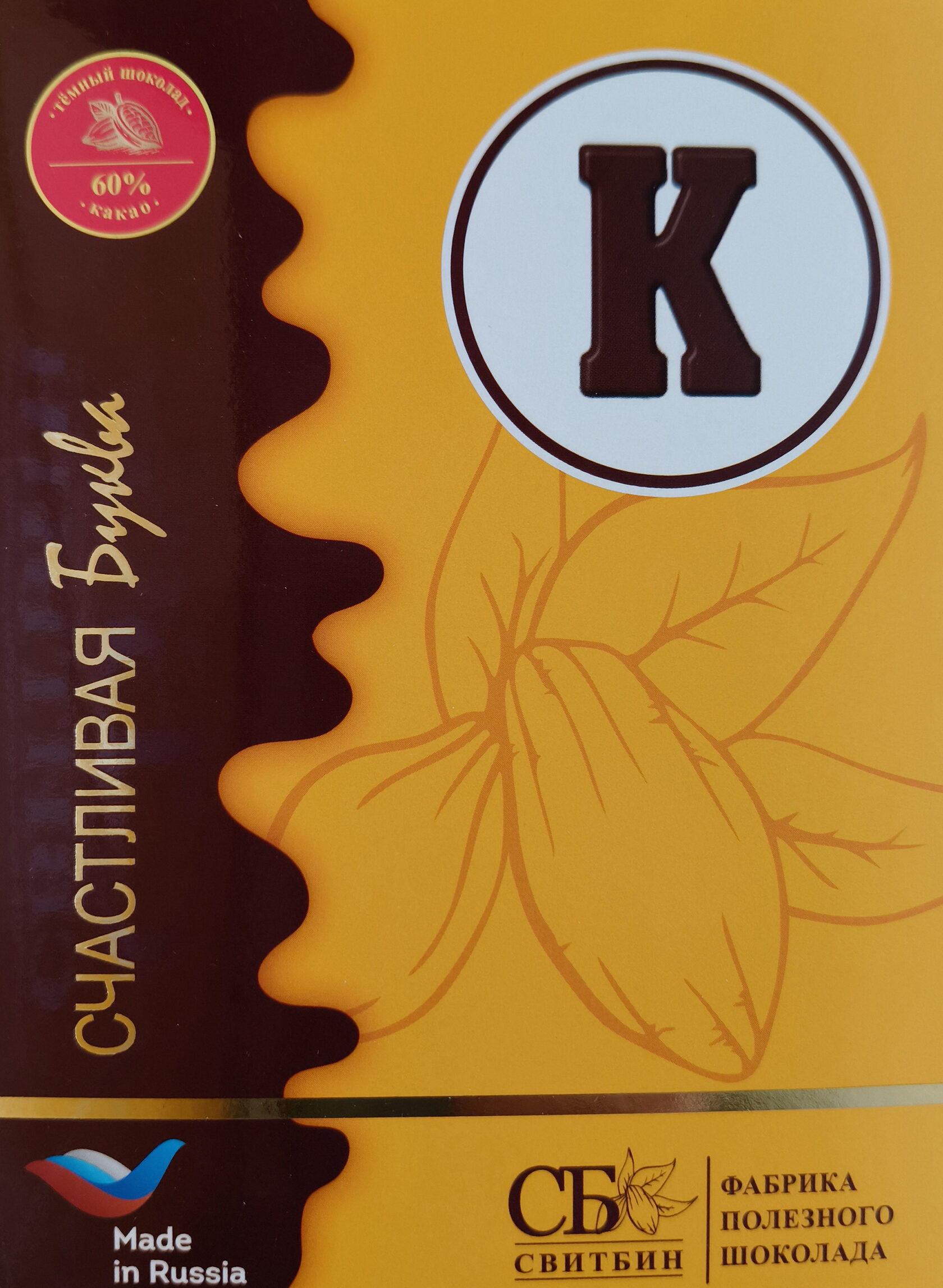 Подарок шоколад темный на сиропе топинамбура "СЧАСТЛИВАЯ БУКВА"