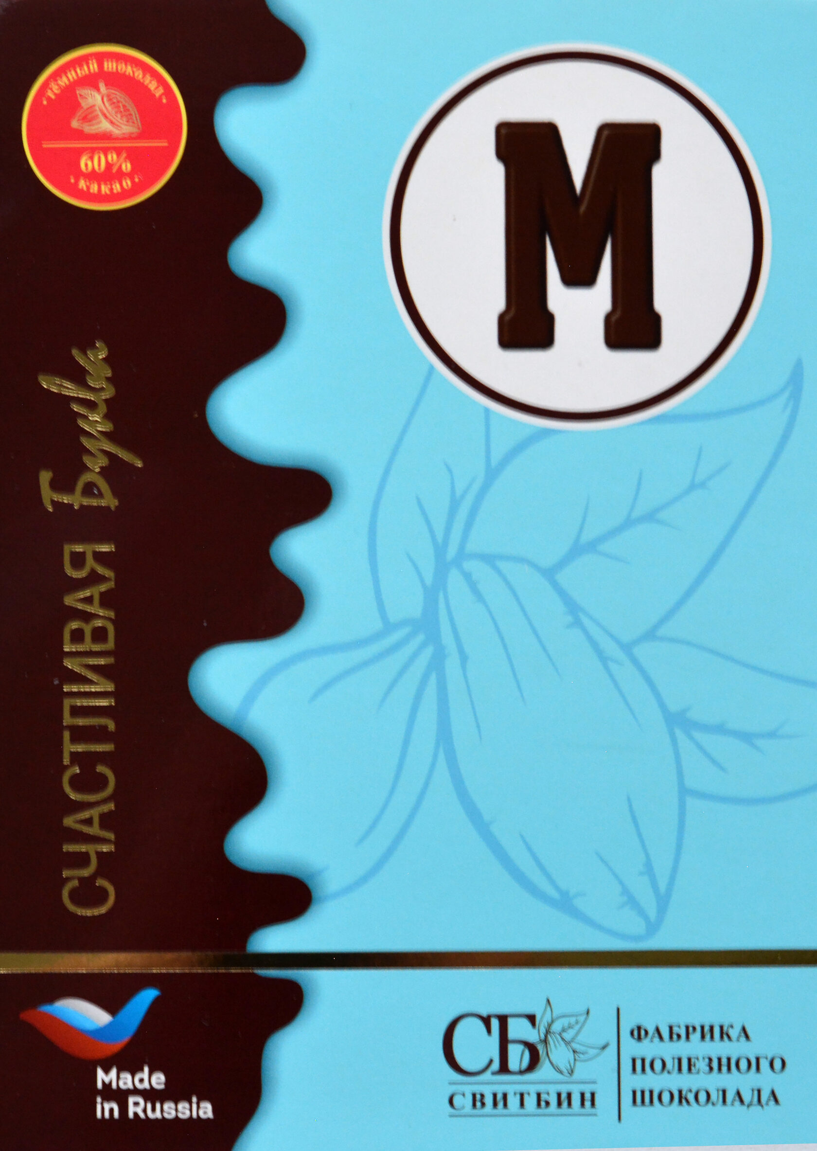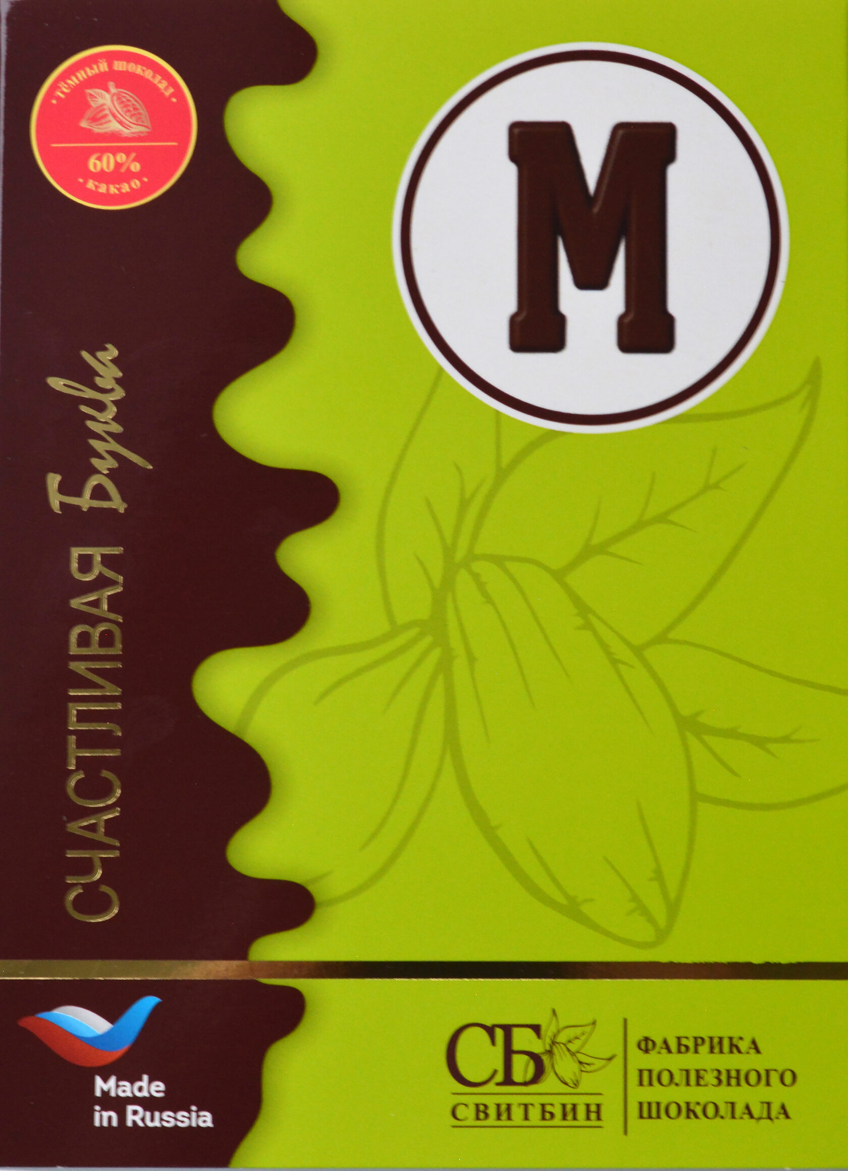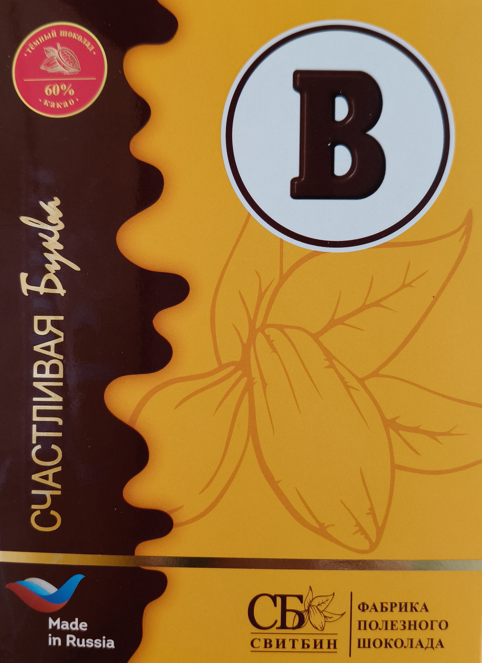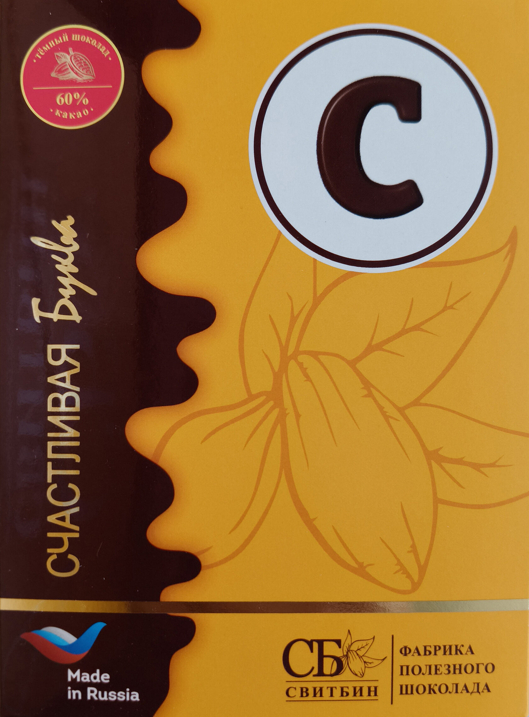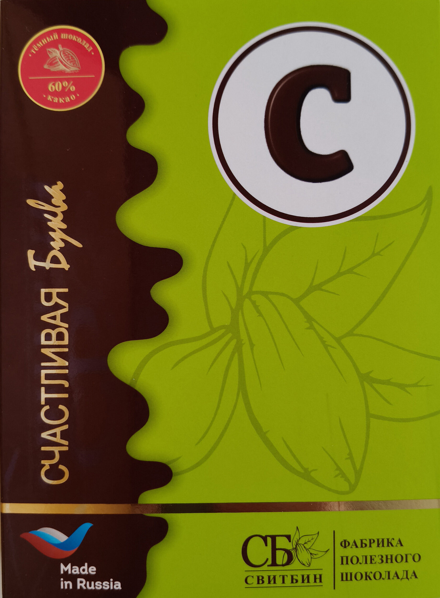 Подарок шоколад темный на сиропе топинамбура "СЧАСТЛИВАЯ БУКВА"