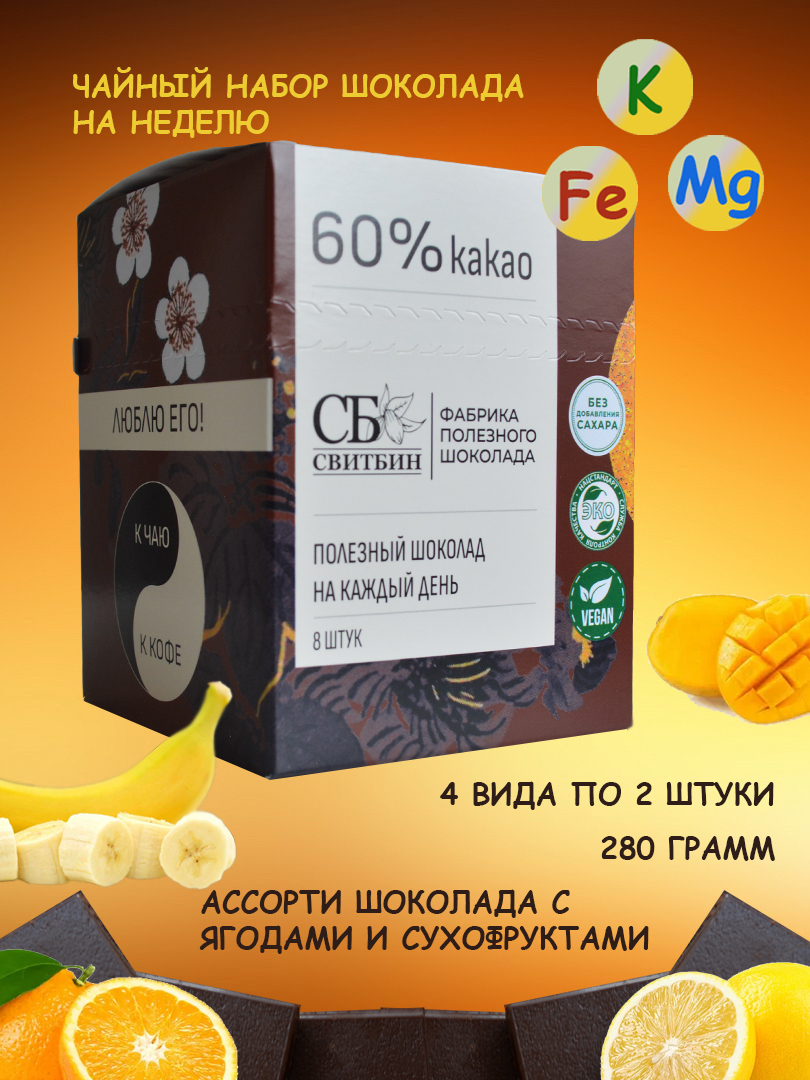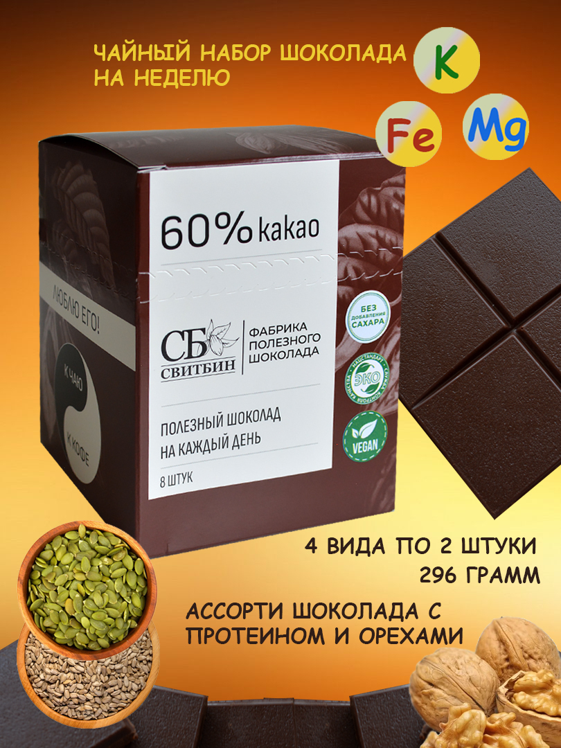 Набор полезного шоколада к чаю/к кофе АССОРТИ 8 шт. (7 дней в неделе + 1 другу в выходной)