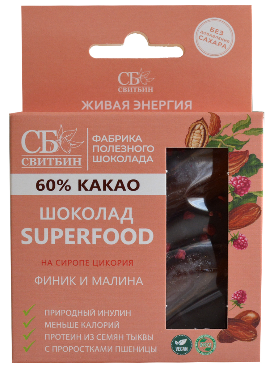 Шоколад на каждый день для активных людей! Восточные нотки вкусу придает финик в сочетании с малиной. Для всех, кто ведет здоровый образ жизни! Веганский продукт! Все ингредиенты натуральные, заряжают энергией и заботятся о поддержании вашей физической формы и умственной гибкости! Шоколад - антистрессовый продукт, повышает настроение! Без сахара! Без пальмового масла! Цикорий - источник природного инулина, натуральный пребиотик, улучшает микрофлору, влияет на иммунитет, рекомендован, как общеукрепляющее средство, положительно влияющее на работоспособность, переносимость физических и умственных нагрузок. Имеет низкий гликемический индекс. Витграс - проростки пшеницы. Витграс полезен для нормального пищеварения и относится к суперфудам.