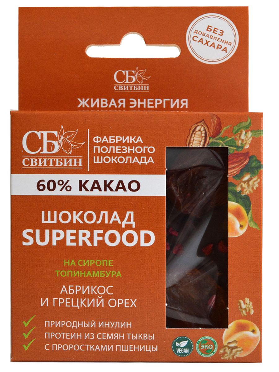 Шоколад на каждый день для активных людей! Вкуснейший абрикос приятно оттеняет вкус натурального шоколада. Для всех, кто ведет здоровый образ жизни! Веганский продукт! Все ингредиенты натуральные, заряжают энергией и заботятся о поддержании вашей физической формы и умственной гибкости! Шоколад - антистрессовый продукт, повышает настроение! Без сахара! Без пальмового масла! Топинамбур - источник природного инулина, рекомендован, как общеукрепляющее средство, положительно влияющее на работоспособность, переносимость физических и умственных нагрузок. Имеет низкий гликемический индекс. Витграс - проростки пшеницы. Витграс полезен для нормального пищеварения и относится к суперфудам.
