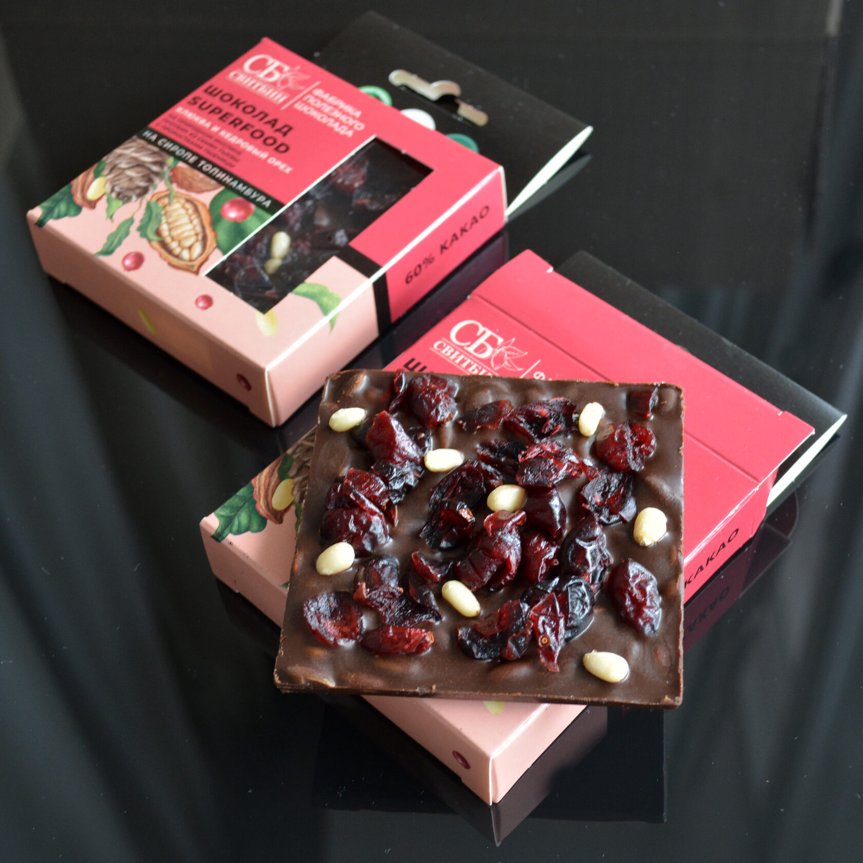Шоколад на каждый день для активных людей! Отправьтесь в поход за сибирским здоровьем вкусив шоколад с клюквой и кедровыми орешками!