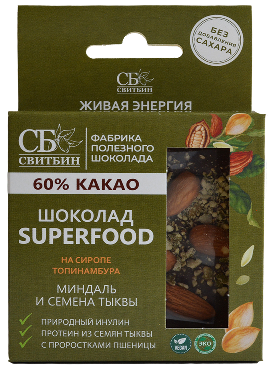 Шоколад на каждый день для активных людей! Шоколад обогащен протеином миндаля и семян тыквы! Для всех, кто ведет здоровый образ жизни! Веганский продукт! Все ингредиенты натуральные, заряжают энергией и заботятся о поддержании вашей физической формы и умственной гибкости! Шоколад - антистрессовый продукт, повышает настроение! Без сахара! Без пальмового масла! Топинамбур - источник природного инулина, рекомендован, как общеукрепляющее средство, положительно влияющее на работоспособность, переносимость физических и умственных нагрузок. Имеет низкий гликемический индекс. Витграс - проростки пшеницы. Витграс полезен для нормального пищеварения и относится к суперфудам.
